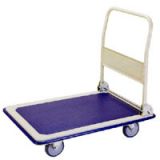 單層摺疊把手,鐵製手推車,表面防銹烤漆塗裝,堅固耐用,檯面鋪設藍色塑膠止