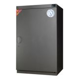 外箱尺寸: (H) 970 * (W) 590 * (D) 500 mm 內箱尺寸: (H) 890 * (W) 580 * (D) 470 mm 平均耗電量 10W 容積243L 固定層板x 3 除濕方式: ◆ 防潮箱 主機採高科技晶片物理冷凝除濕 ◆ 防潮箱 並具斷電後可持續 12 小時吸濕功能,壽命長達 10 年 濕度顯示方式: ◆ 防潮箱 濕度範圍 25 - 55 % RH內,高級溫濕度錶顯示,濕度值經工研院檢測校正 ◆ 防潮箱 採採智慧型無段式控制 ◆ 防潮箱 全機型 60分鐘內可從 70 % RH濕度達成 40% RH,無熱效應、防靜電 除濕器材質: 除濕器機殼採 ABS 防火塑材一體成型,具耐熱、絕緣保護主機等效果,卡式設計拆卸方便 外觀材質: 防潮箱 箱體採1mm強化鋼板,櫃體採黑灰色高級耐磨烤漆 保固: 產品保固五年;投保 3 仟萬產品責任險 國際認證: ISO 9001國際認證、歐洲 CE 安規國際認証、LVD 電器安規