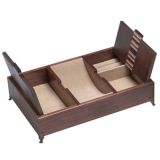 此高級珠寶盒,專為男仕設計,中間弧型凹洞讓您的零錢或錢包,旁邊兩側也適合用於項鍊、戒子、墬子的珠寶盒,質優典雅的胡桃木,經由精湛的手工鑲著上藝術彩虹木使精緻的珠寶盒,倍顯尊貴。
