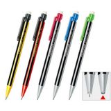 書寫用自動鉛筆,符合人體工程學三角自動鉛筆,書寫時既輕鬆又不易疲倦,伸縮型鉛芯筆套設計,可避免弄髒衣袋,彈簧式筆頭具有預防筆芯折斷功能,附特大橡皮擦-不含聚氯乙烯及乳膠,筆芯規格:0.5mm