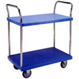 .材質:二層電鍍雙邊把手,高級耐衝擊塑膠材質製平板車台 ,堅固耐用,檯面有止滑紋路。另有其他類型車輪可供選擇,亦可替換成剎車輪 .輪子:5" 橡膠.尼龍輪 .Color:藍色 .特色: 1. 可承載120 KGS。 2. 輕輕鬆鬆解決重物的搬運問題。 .台面尺寸:710 x 455 mm .把手高度:960 mm .承重量:120 kgs