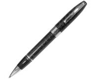 卓越-傳家系列 皮紋黑桿 18K鈀金古典鑲嵌式筆尖鋼珠筆
