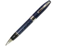 卓越-傳家系列 皮紋藍桿 18K鈀金古典鑲嵌式筆尖鋼珠筆