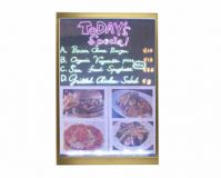 - 雙層透明壓克力板,可手寫,可置放海報,螢光字體配合LED發光,廣告最顯眼