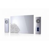 三件式 時尚木質喇叭 3800W 雙喜圓滿 白「譽璽」是全新設計展現東方文化風貌,希望帶給聽者有古典與時尚科技的生活聽覺享受,它是集合文化、美學、工藝、時尚,且平易近人的新中國風體驗,歡迎您與譽璽一起分享這個喜悅。 牡丹系列 ”雙喜圓滿” 推出亮黑與亮白兩個色系,黑色外型呈現亮黑帶紅色喜氣,白色外型潔白亮麗,與周邊衛星喇叭可合併成圓滿造型,再加入重低音的新潮搭配,勾勒出絕佳的情境,配合大功率的功能表現,其獨特音質調音的臨場感,經過譽璽專屬譽聲實驗室的認證,更能展現高效率的高音表現及超重低音恢弘飽滿的音域,另外特別以全球通用電壓設計,AC100V~240V/ 50~60Hz輸入電壓均可使用,是獻給愛好美聲的時尚人士,最佳選擇。 產品規格 1. Max Power Output / 最大瞬間輸出功率(P.M.P.O.):3800W 2. Power Rating / 平均輸出功率(R.M.S.): 38W 3. Driver / 單體: 衛星喇叭:2吋中高音單體 重低音:5.25吋重低音單體 4. Impedance / 阻抗: 4 Ω 5. Frequency Response / 頻率響應: 65Hz – 20KHz 6. Function / 控制功能:主音量含開關、高音旋鈕、低音旋鈕、LED指示燈、耳機孔 7. Line in / 聲音輸入: Ø3.5mm 8. Magnetically Shield / 防磁功能: 無 9. Dimension / 本體尺寸( W x H x D) :衛星喇叭:75 x 230x82mm,重低音:380 x 260 x145mm 10. 輸入電壓:AC 100V – 240V / 50-60Hz 11. 可搭配電腦液晶螢幕、MP3、iPod、iPhone、CD Player---- 播放系統