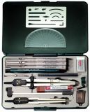 速動大圓規、分規、萬用接頭、延伸桿、鴨嘴筆、0.5mm筆、0.5mm筆芯、橡皮擦、零件盒、0.1 0.3 0.5mm代針筆 、消字板、量角器