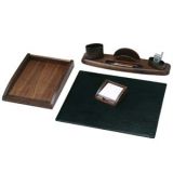 以美國進口高級胡桃木(Walnut)製成,加以圓弧造型切割外型,更呈現出此套精緻文具組的優雅大方,最適合家中書房或辦公室使用。