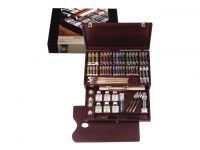油畫顏料35色組豪華木盒 林布蘭的高品質專業畫材是廣為人知的,高技術的品質基礎建立在最好的顏料上,用純熟的技術及藝術家的觀點去研發,更滿足專業級畫家的高品質要求。 木盒內容: 油畫顏料 15ML : 19 支 、40ML : 18支、60ML : 3支、150ML : 1支 調和油 75ML: 083 畫用調合油 Rembrandt Painting Medium 089 無臭石油酒精 White Spirit 002 保護用凡尼斯(亮光) Picture Varnish(Glossy) 003 保護用凡尼斯(平光) Picture Varnish (Mat) 004 補筆用凡尼斯 Rembrandt Retouching Varnish 086 松脂油 Glazing Medium 畫筆 200 no. 8, 12,16 208 no. 6,10,14 240 no. 6,10 291 no. 4,8 畫刀 no. 3010, 3012, 3015 炭筆 25支 調色盤 , 油壺*2,雙口油壺*1 色卡 , 調色手冊
