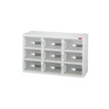 置物櫃櫃體 材質: 0.7mm 日本進口 SECC 特殊防鏽鍍鋅鋼鈑 粉體塗裝0.1mm高溫粉體塗裝 厚度: 0.8mm SC產品特色 獨特設計說明 1. 門片開關採用強力磁鐵吸附 容易開合 2. 人性機能設計 門片內部 均有3個掛勾 可掛鑰匙或小物件(M門片 4個掛勾) 3. 櫃體背部 通氣孔設計 減少異味 4. M門片均附彈力繩 方便收納小東西 5. 門片皆附流水號碼卡 貼心設計 便於管理。 精緻透明視窗 辨識清楚(此功能只限於透明門片) 6. 專利門片結構設計 更加堅固耐用 門片組裝拆卸便利 專利號碼 M258653 尺寸:890Wx350Dx550Hmm