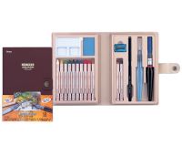 日本選色與台灣得稍微有不同,顏色顯得較為沉穩。兼具色鉛筆及水彩兩種繪畫效果,內裝附贈一支自來水畫筆、一支自來水毛筆、一支鉛筆,對於外出寫生,速寫十分便利。